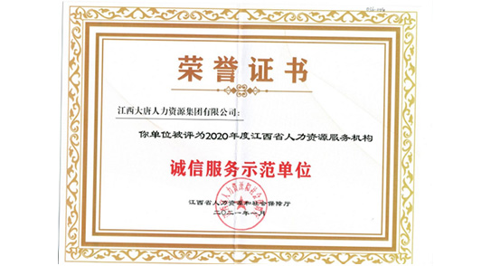 人力資源服務(wù)機(jī)構(gòu)誠信服務(wù)示范單位